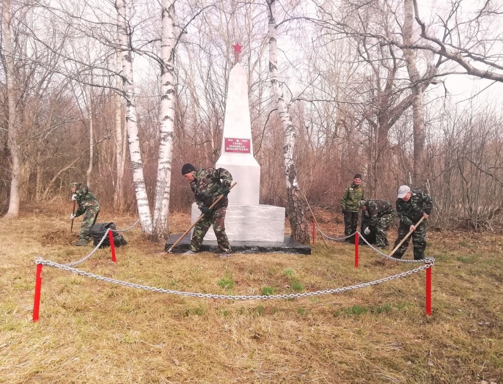 Была организована уборка и благоустройство территории вокруг памятника: очистили местность от мусора и сухих листьев, посадили цветы, покрасили памятник.